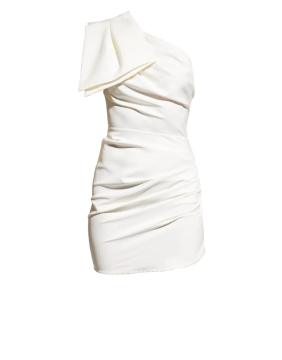 Stella Bow-Shoulder Ruched Asymmetrical Mini - White (BXB)