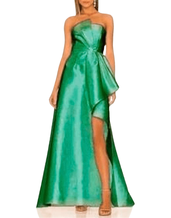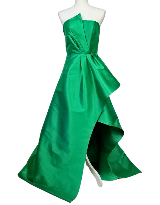 Protea Satin Strapless Asymmetrical Maxi Gown - Green (ET)