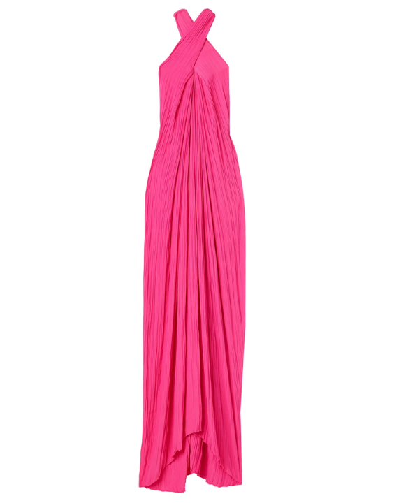 Rio Criss-cross Pleated Maxi Gown - Neon Pink (ALC)